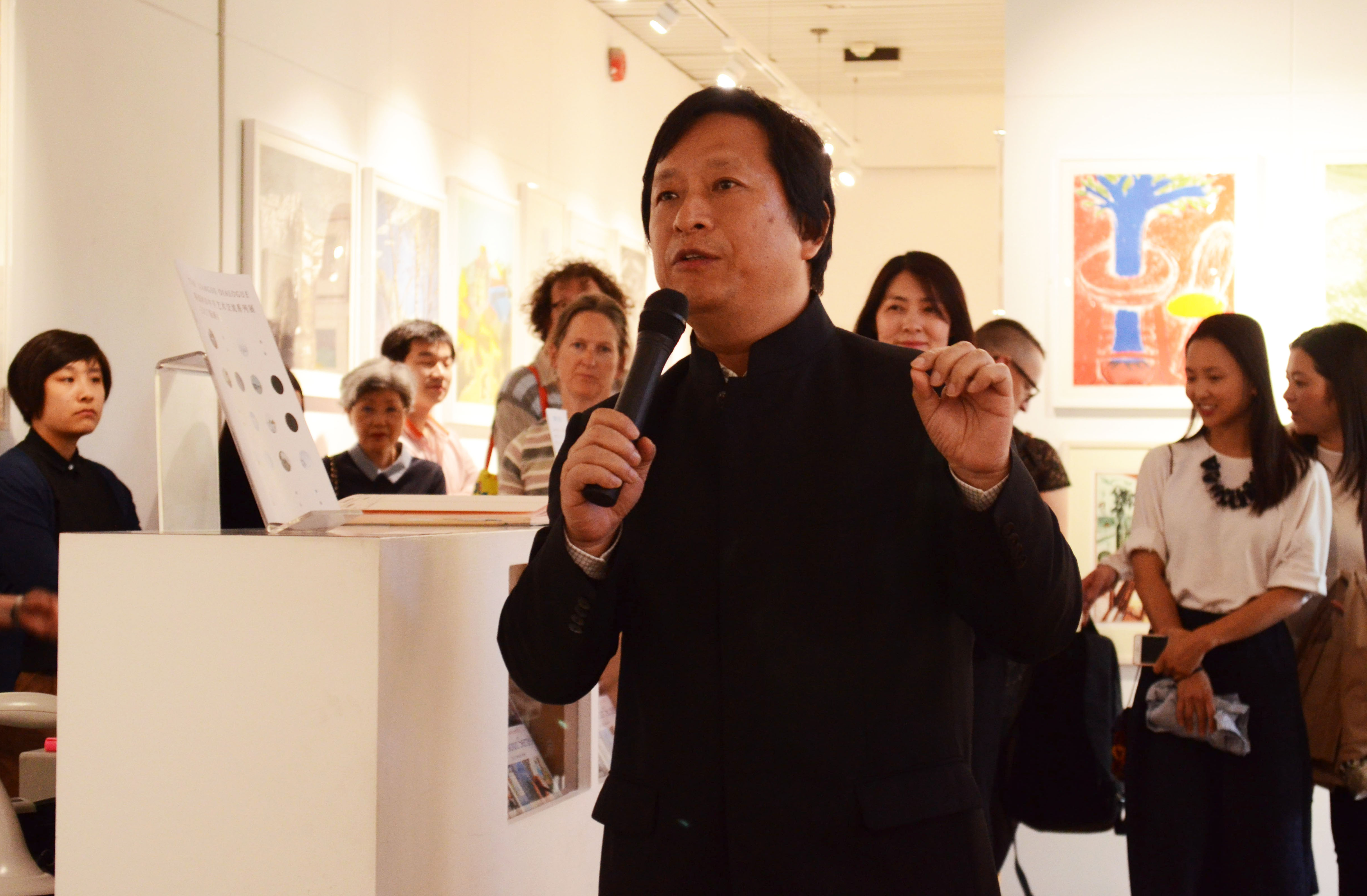 畫展開幕儀式上,英國皇家版畫家協(xié)會(huì)主席Michael Barratt、江蘇省美術(shù)館館長徐惠泉、愛濤文化集團(tuán)常務(wù)副總經(jīng)理陳云梅分別致辭,并向參展本次版畫展的中英藝術(shù)家代表頒發(fā)了參展證書。