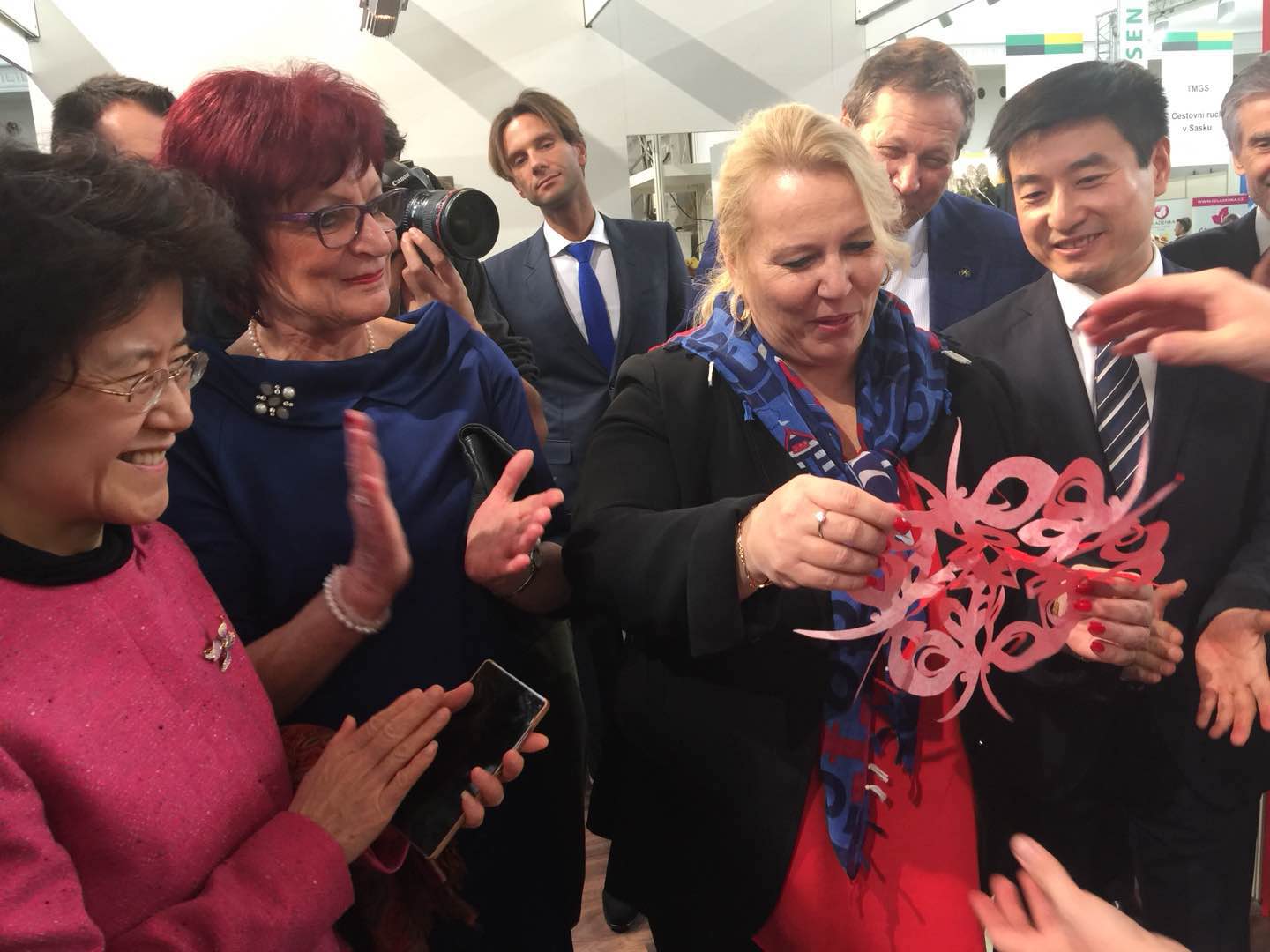 愛濤文化集團“歡樂春節(jié)·精彩江蘇”文化藝術展演團向與會賓客呈獻了精妙的江蘇非遺剪紙技藝、揚州木偶《變臉》絕活和高難度的嗩吶演奏《百鳥朝鳳》等節(jié)目,精彩的表演使中國展位在交易會上倍受矚目,前來參觀的捷克地方發(fā)展部部長多斯塔洛娃女士、捷克世界小姐代表等嘉賓對江蘇藝術展演展示駐足觀看,嘖嘖稱贊,同時前來視察的駐捷大使馬克卿女士、江蘇省政府及江蘇省文化廳領導對愛濤文化集團“歡樂春節(jié)·精彩江蘇”文藝演出和非遺展示予以高度評價和充分肯定,中國展臺還被主辦方授予“最佳展臺獎”和“最佳組織獎”。展演展示活動為深化捷中旅游領域交流與合作,共樹“一帶一路”旅游合作典范推波助瀾。