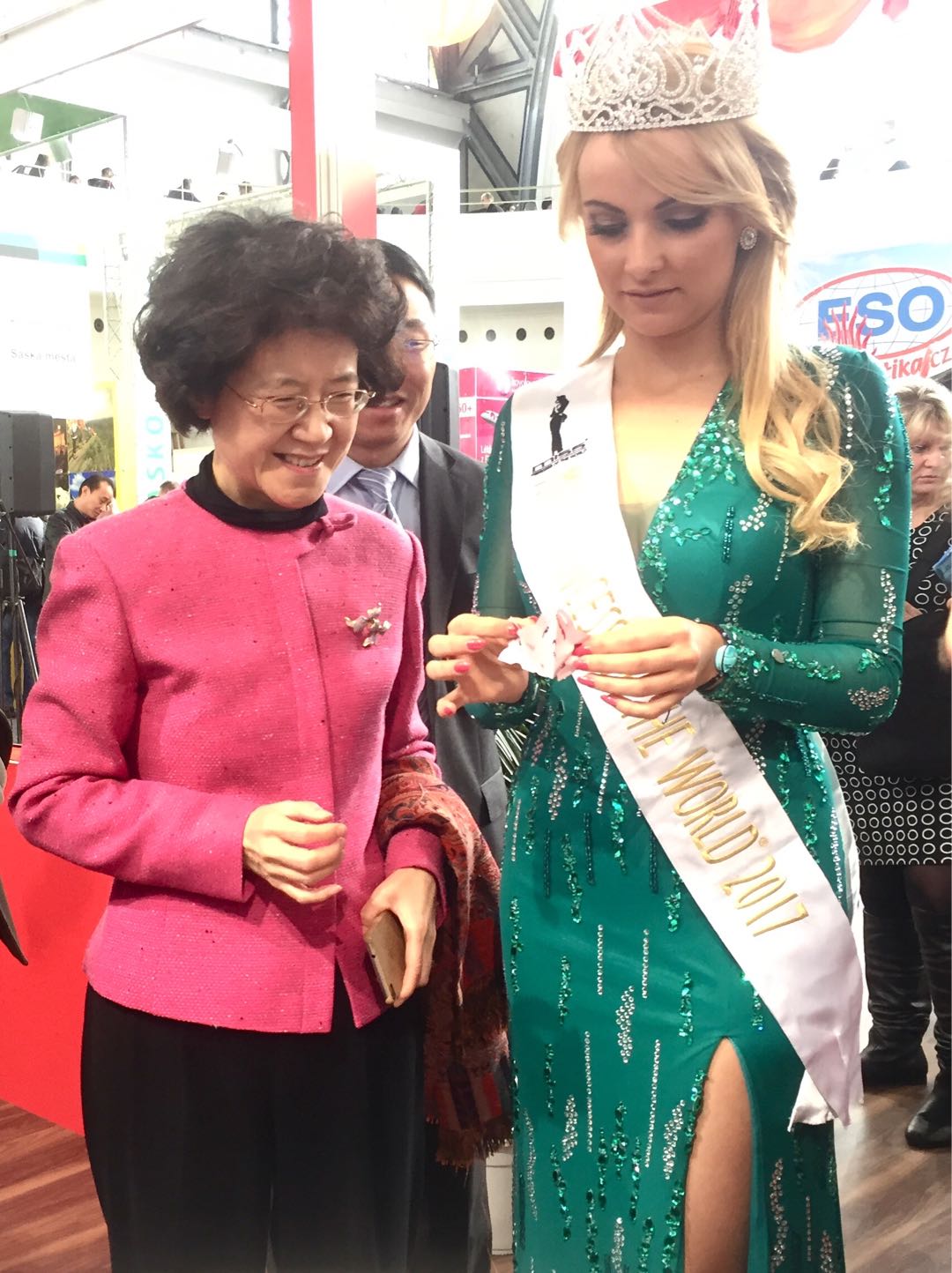 當地時間2月15日,在捷克首都布拉格展覽中心,愛濤文化集團“歡樂春節(jié)·精彩江蘇”文化藝術展演團為第27屆捷克“假日世界”國際旅游交易會助力展演。駐捷大使馬克卿女士、捷克地方發(fā)展部部長多斯塔洛娃女士、江蘇省文化廳副廳長劉愛華、江蘇省文化廳對外交流處副處長周云鳳蒞臨中國展位,愛濤文化集團總經理陳云梅向來賓介紹了愛濤文化集團“歡樂春節(jié)·精彩江蘇”文化藝術展演團為本次旅游交易會精心準備的展演節(jié)目。