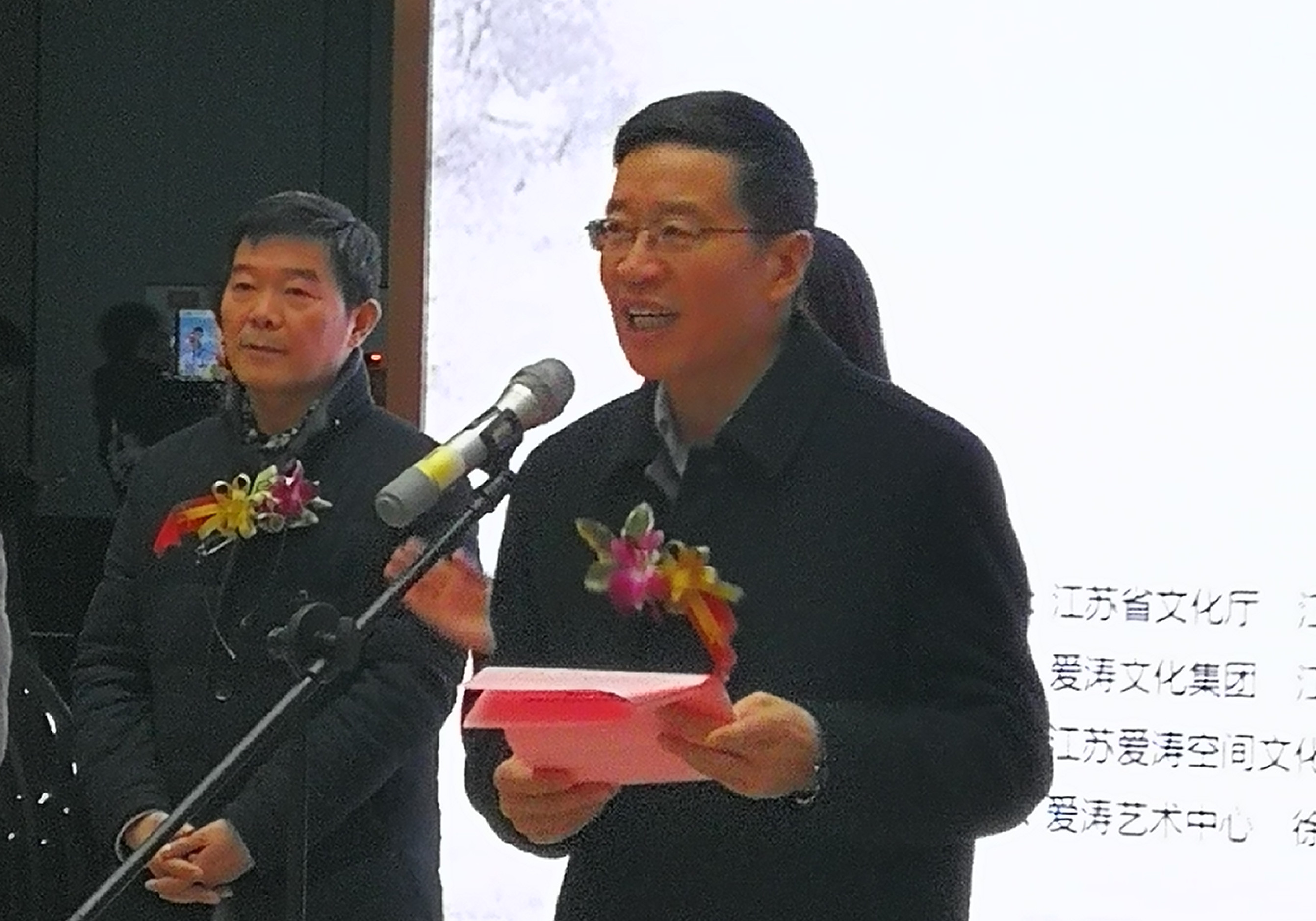 開(kāi)幕式上,原江蘇省文化廳巡視員、現(xiàn)江蘇藝術(shù)基金會(huì)副理事長(zhǎng)、全國(guó)美協(xié)中國(guó)畫(huà)藝委會(huì)副主任、國(guó)家畫(huà)院中國(guó)畫(huà)院副院長(zhǎng)高云、江蘇省蘇豪控股集團(tuán)黨委委員、副總裁唐進(jìn)致辭,并為展覽揭幕。江蘇省文化廳江蘇藝術(shù)基金辦公室主任濮琦、徐州市文化廣電新聞出版局局長(zhǎng)高成富、愛(ài)濤文化集團(tuán)總經(jīng)理陳云梅、江蘇省美術(shù)館副館長(zhǎng)金田、徐州市書(shū)畫(huà)院院長(zhǎng)、徐州美術(shù)家協(xié)會(huì)主席高洪嘯、江蘇師范大學(xué)美術(shù)學(xué)院常務(wù)副院長(zhǎng)惠劍以及省、市書(shū)畫(huà)家出席開(kāi)幕儀式。